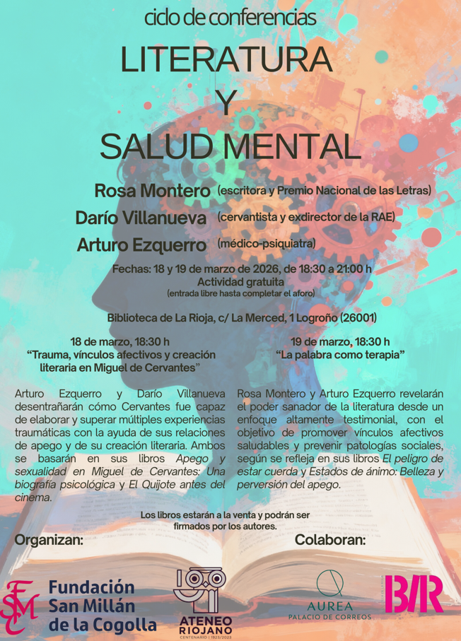 La Fundación San Millán de la Cogolla y el Ateneo Riojano organizan el ciclo de conferencias “Literatura y salud mental”, una propuesta que invita a reflexionar sobre la relación entre la creación literaria, la experiencia humana y el bienestar emocional.