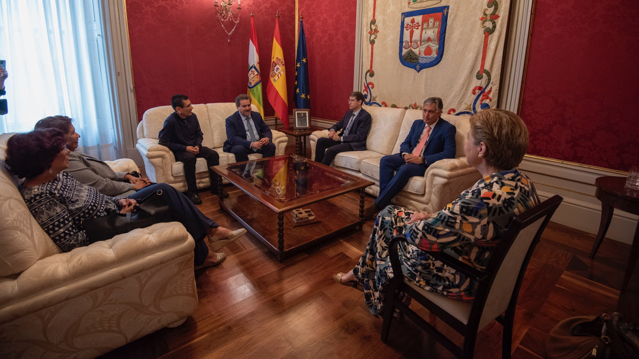 El presidente del Gobierno de La Rioja y de la Fundación San Millán de la Cogolla, Gonzalo Capellán, junto al Consejero de Cultura, Turismo, Deporte y Juventud, José Luis Pérez Pastor, ha recibido esta mañana a los vocales de la Comisión Permanente 2023 de la Asociación de Academias de la Lengua Española (ASALE): Aurora Camacho Barreiro, secretaria de la Academia Cubana de la Lengua; María Teodora Vargas, miembro de número de la Academia Hondureña de la Lengua; y Mario Portilla Chaves, miembro de número de la Academia Costarricense de la Lengua; acompañados por el secretario general de la Asociación y patrono de la Fundación San Millán de la Cogolla, Francisco Javier Pérez.