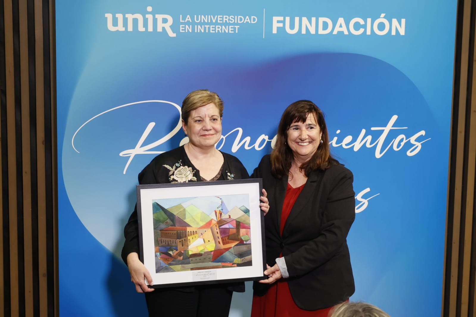 La vicerrectora de Profesorado y Acción Cultural de UNIR, Teresa Santa María, ha concedido el reconocimiento a la ‘Institución pública y fundación’ a la Fundación San Millán. Ha recogido el galardón la coordinadora general de la Fundación, Almudena Martínez, para quien “además de sentir con este premio que seguimos celebrando nuestro 25 aniversario, una efeméride que conmemoramos el año pasado, consideramos en la Fundación que este reconocimiento es un aliciente para seguir trabajando, con más ahínco si cabe, en lograr los objetivos con los que nació esta entidad”.
